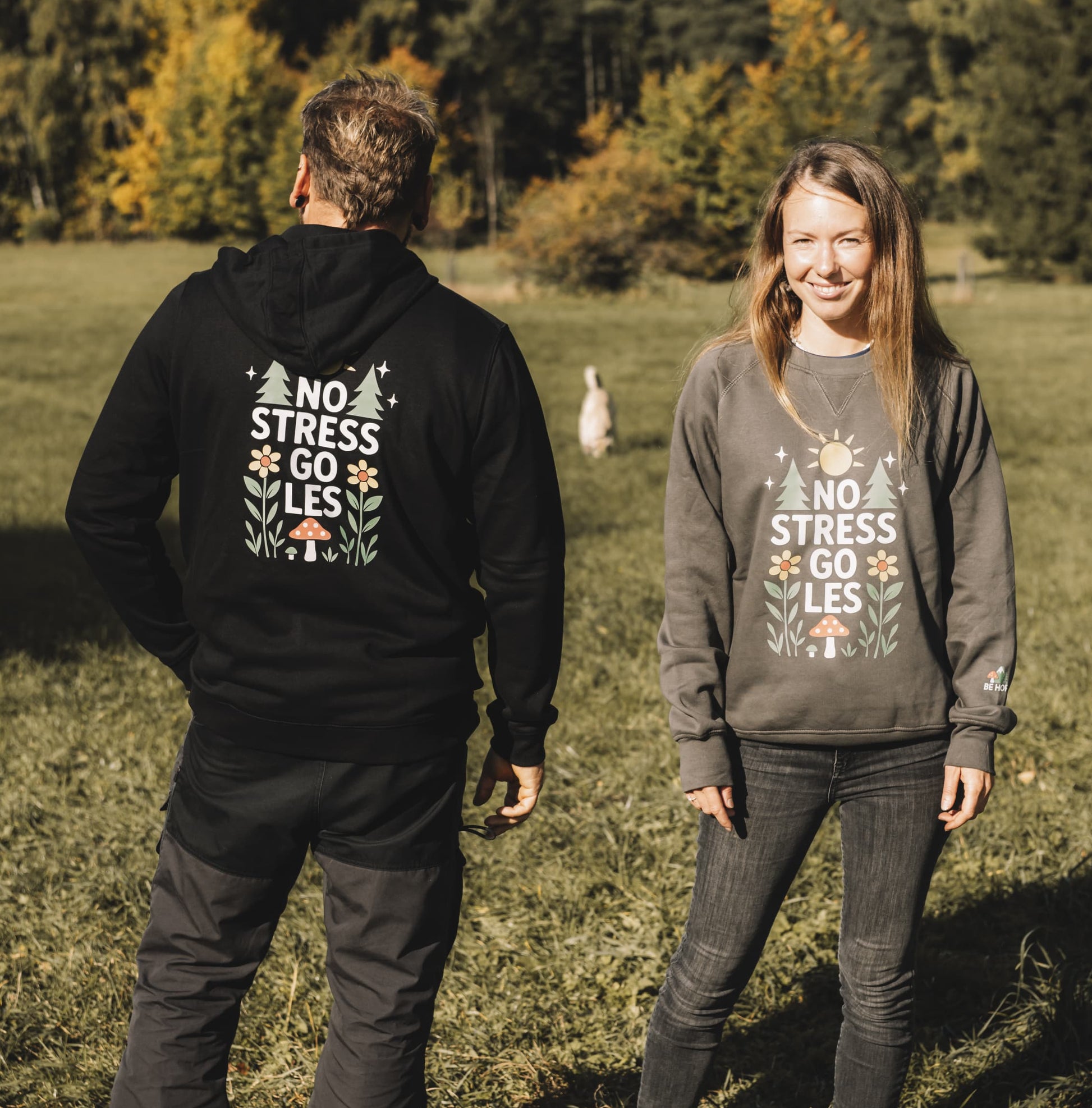 Dámská mikina bez kapuce No Stress Go Les 2. Protože nejlepší terapie je lesní. A když zrovna nemůžeš doopravdy, tahle mikina je skvělej náhradní plán. Měkká, voňavá a hřeje na duši.