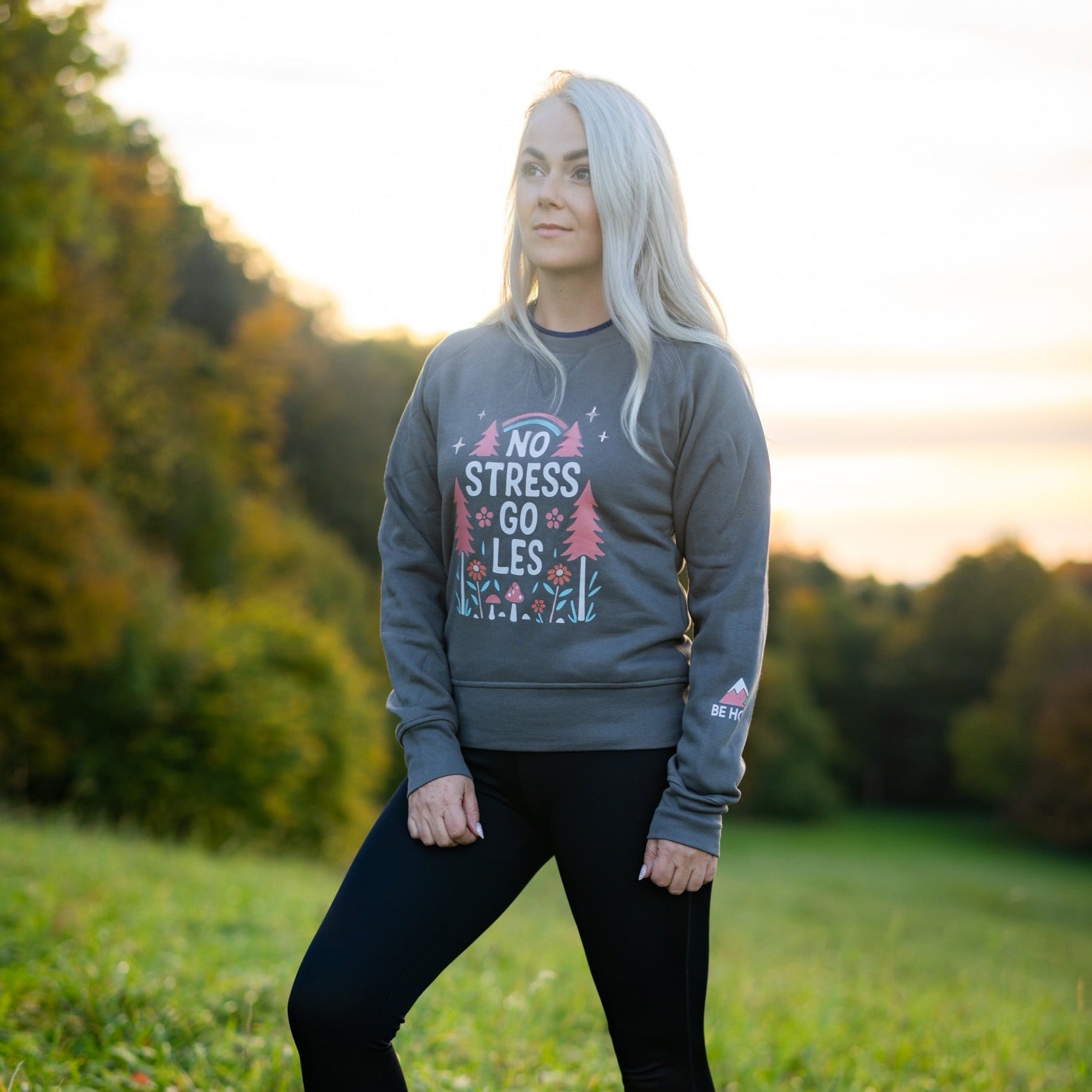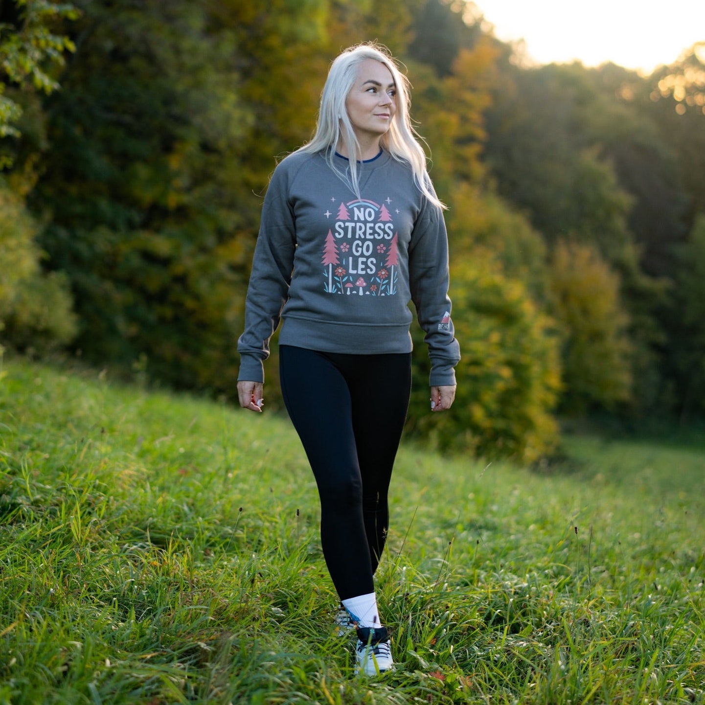 Dámská mikina bez kapuce No Stress Go Les. Protože nejlepší terapie je lesní. A když zrovna nemůžeš doopravdy, tahle mikina je skvělej náhradní plán. Měkká, voňavá a hřeje na duši.