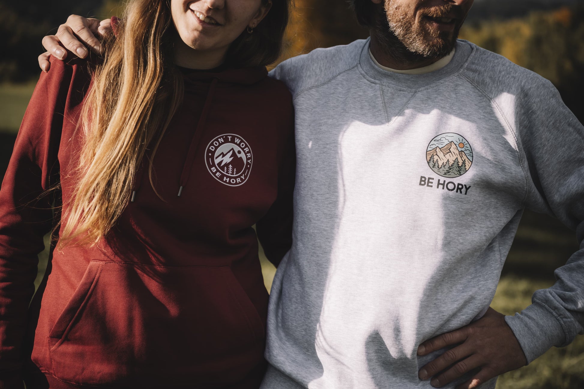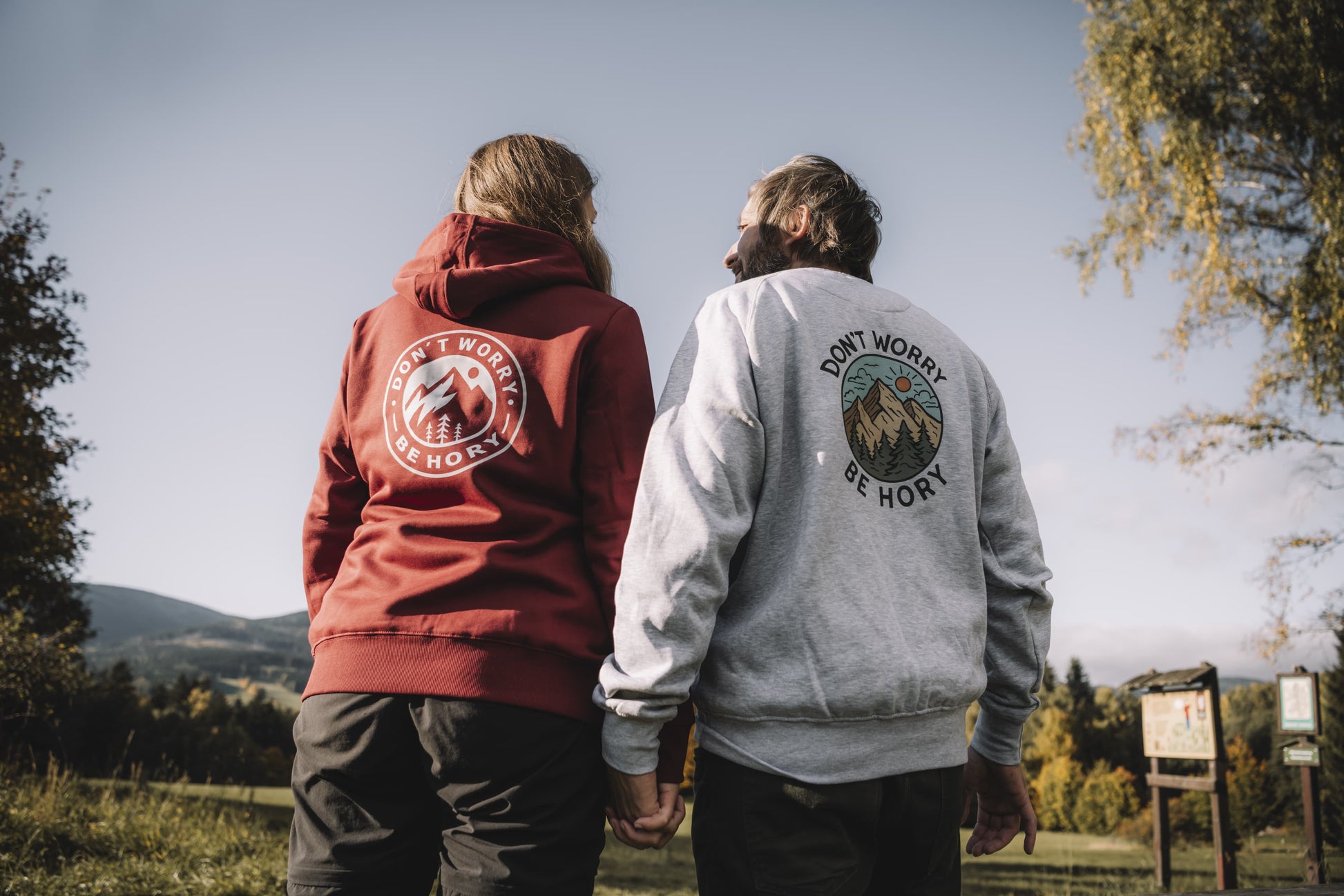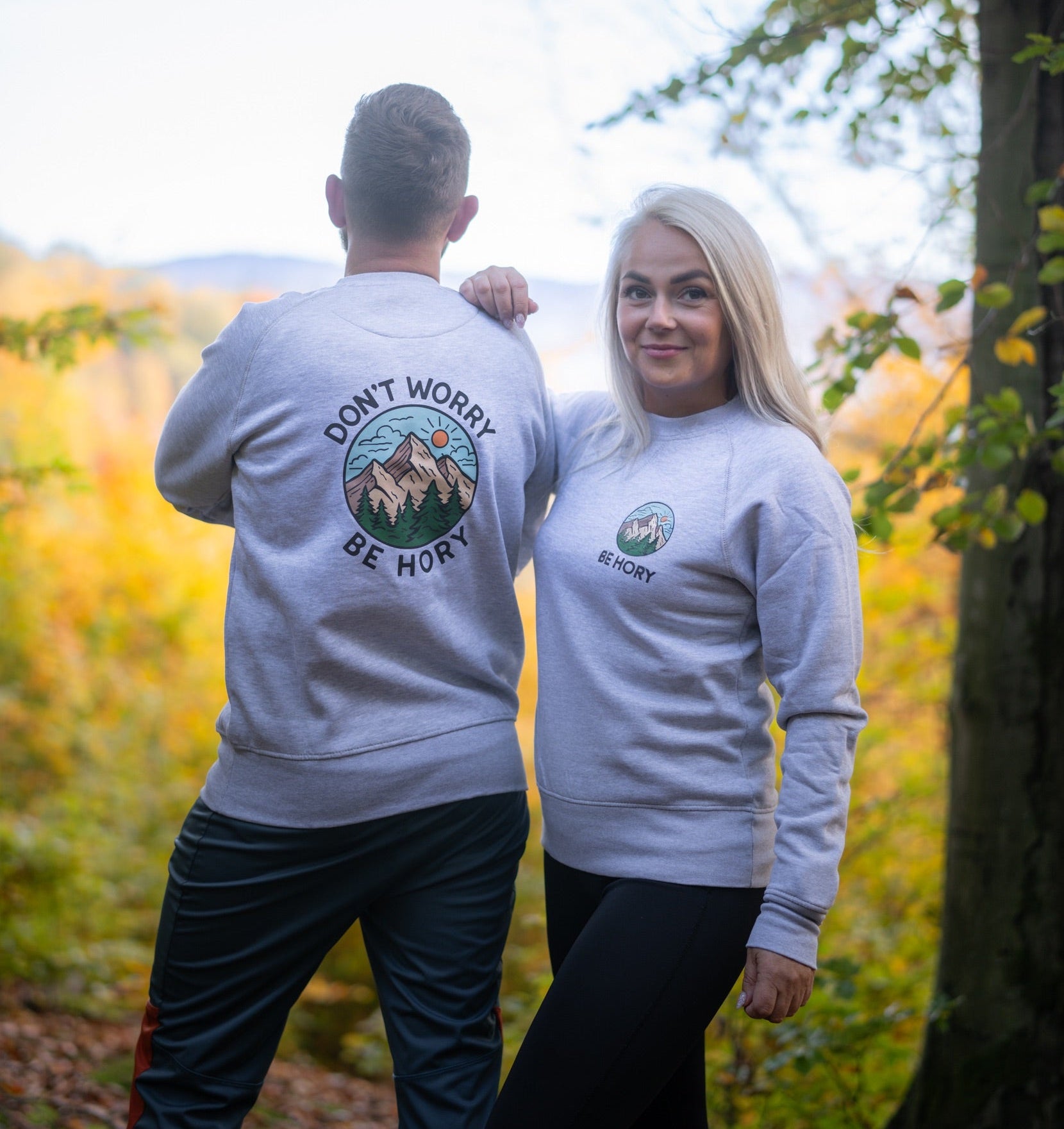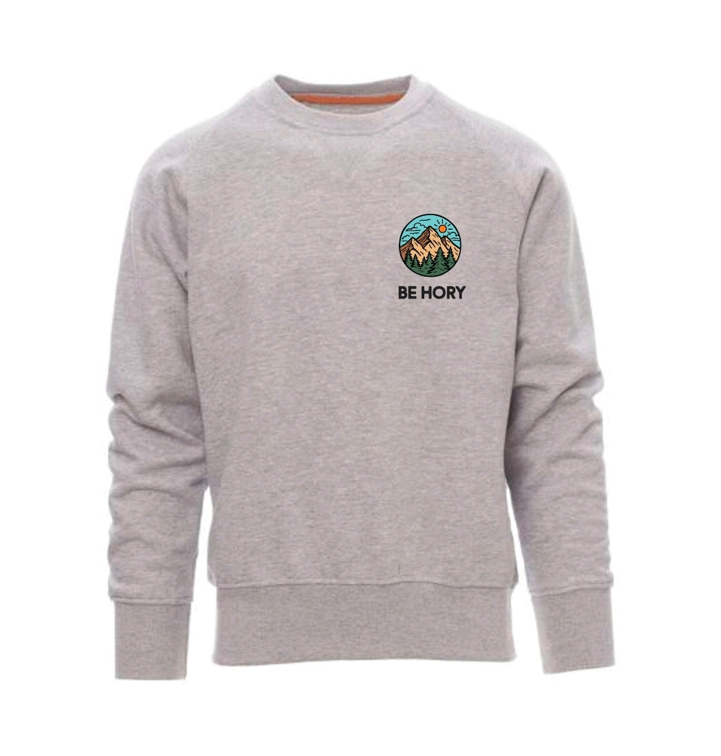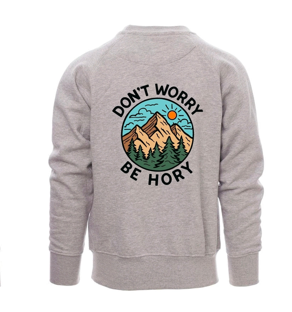 Tahle světle šedá mikina je taková nenápadná horská parťačka pro všechny, kdo chtějí nosit svůj horský humor hezky decentně. Na srdci máš malé kulaté logo Be Hory, takže každý hned ví, že patříš do naší horské bandy. A na zádech? Tam je velké kulaté logo s horami, lesy a nebem, které ti říká: “Don't Worry Be Hory.” Prostě taková horská pohoda, co si vezmeš kamkoli!