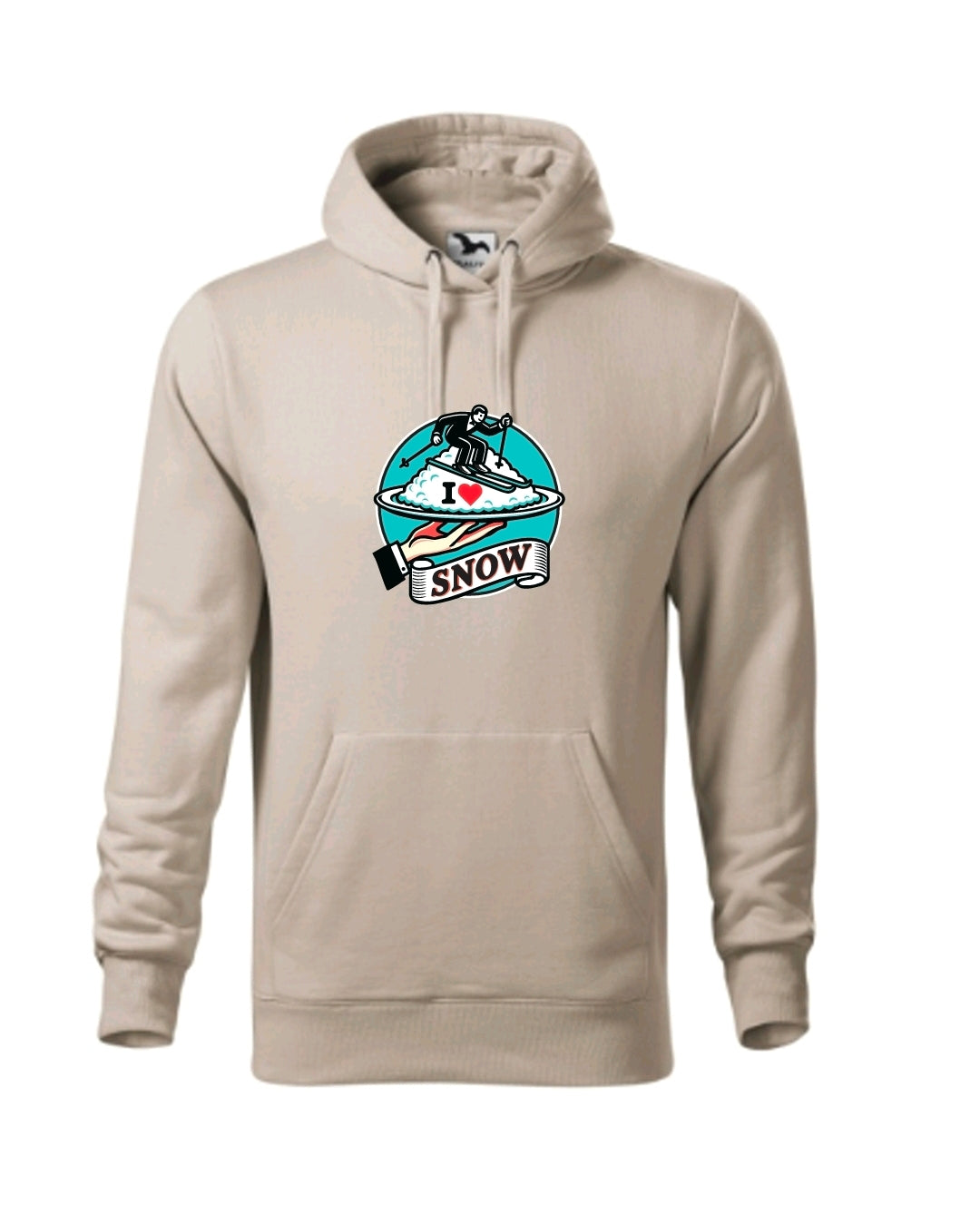 Tahle krémová mikina s kapucí je jako objetí od horského vánku, akorát o dost příjemnější. S lyžařem a nápisem “I love snow” vpředu ti dodá tu pravou zimní pohodu. Prostě si ji oblékneš a všichni hned poznají, že sníh je tvoje láska a že máš smysl pro humor.