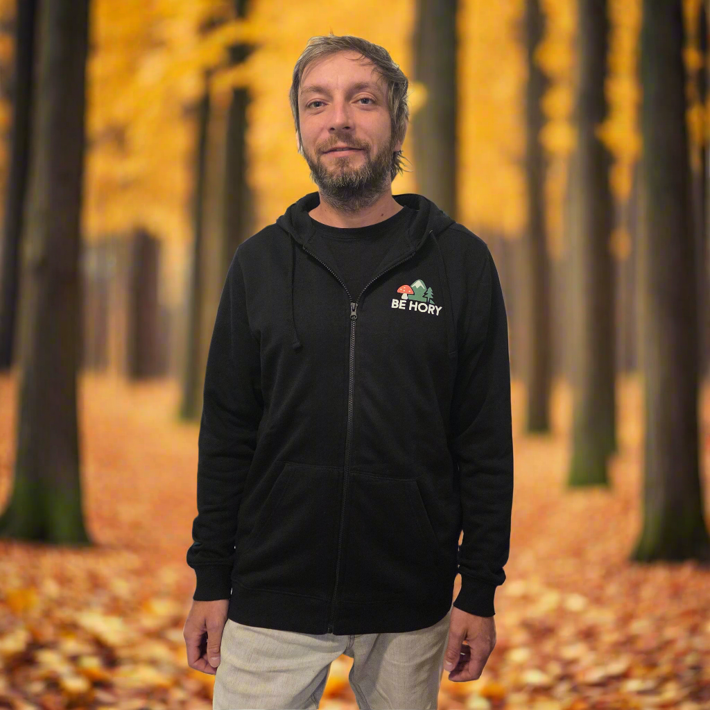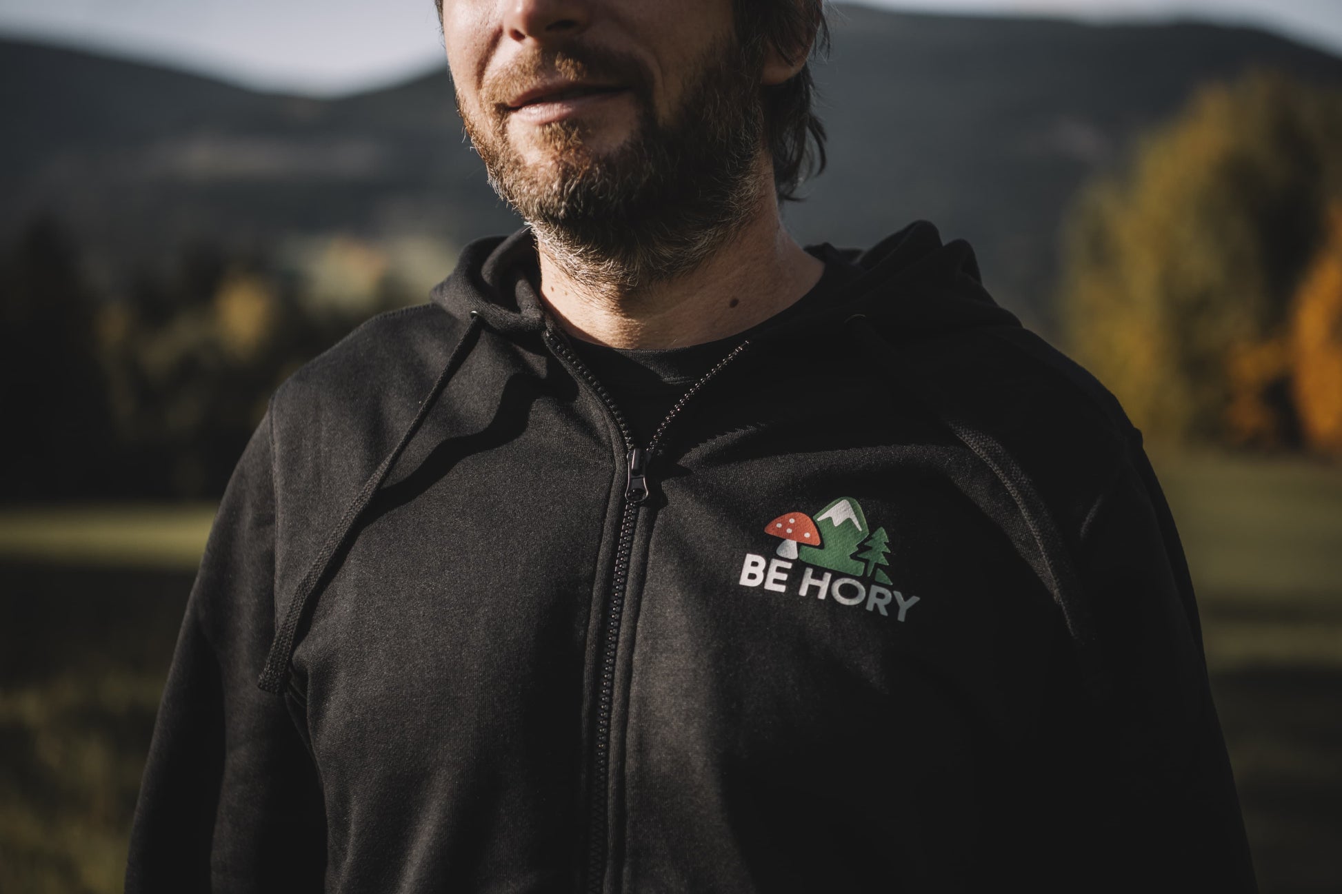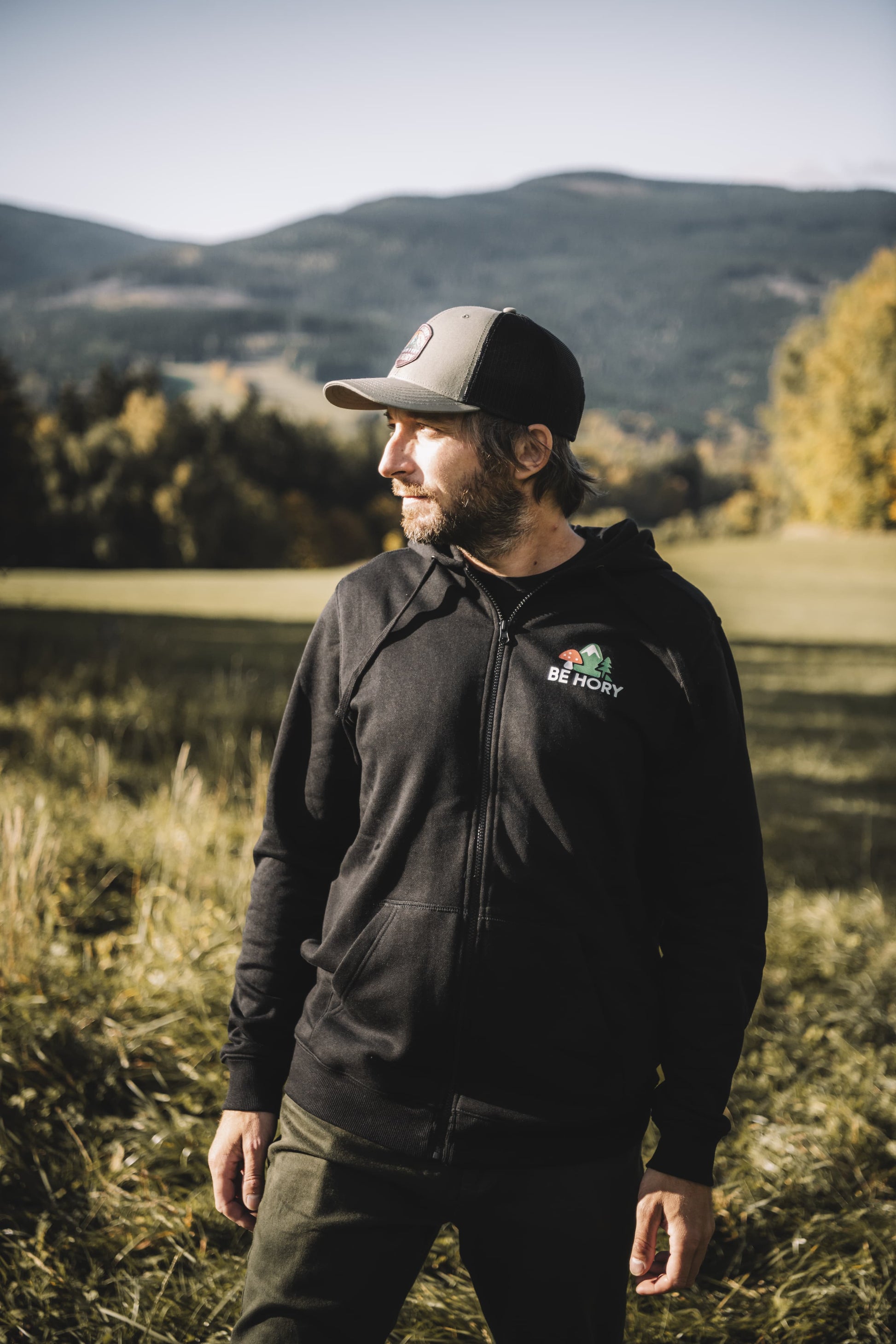 Černá pánská mikina na zip pro všechny, kdo místo stresu volí les.