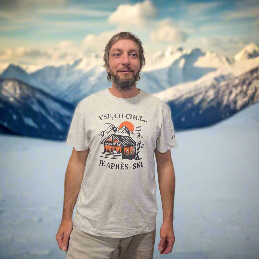 Tohle tričko je oslavou všech, co milují horskou pohodu, drink v ruce a nohy v přezkáčích. Prostě Aprè-ski lifestyle – vše, co opravdu chceme.