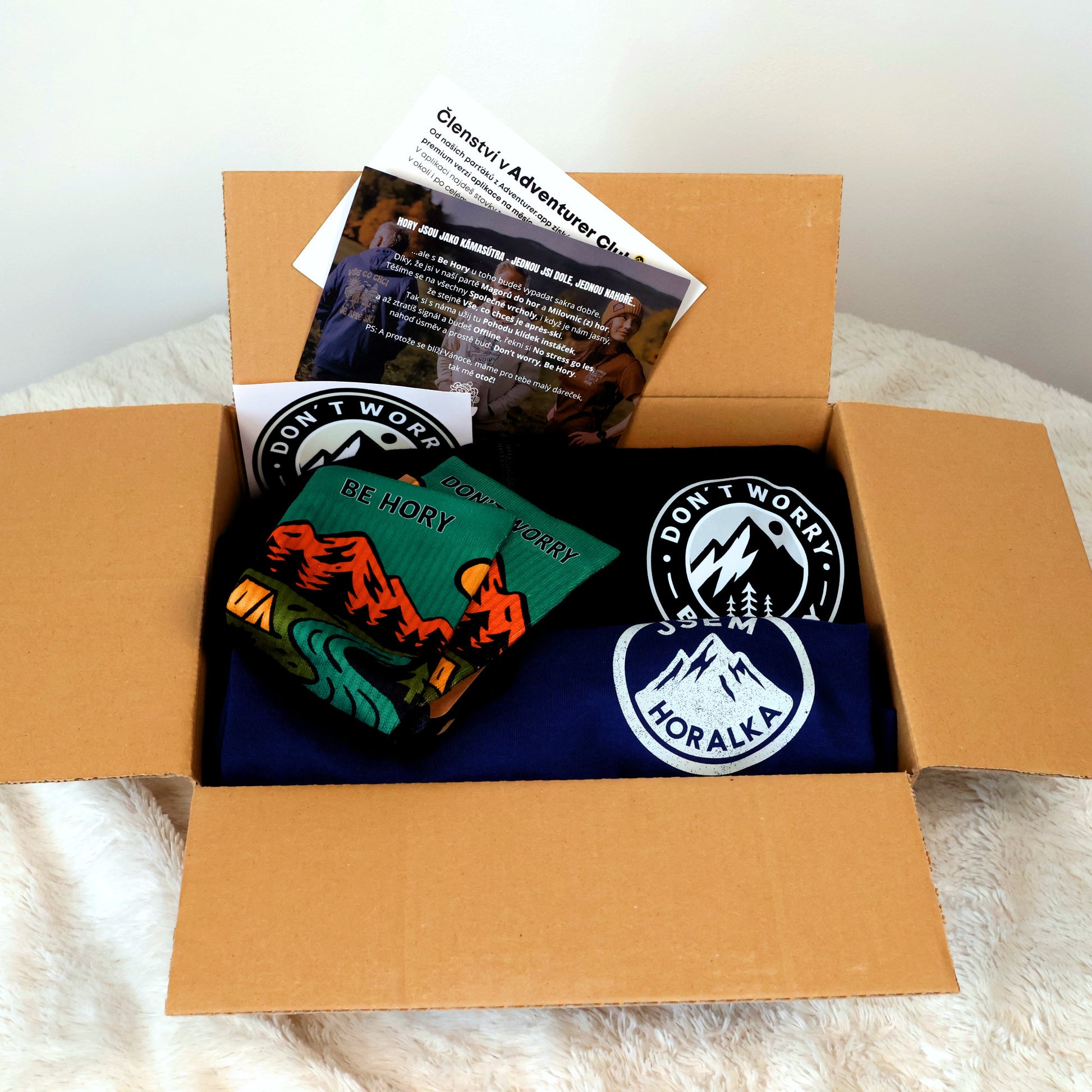 K tomu přidáváme měsíční Adventurer zdarma, dárkovou kartičku s malým překvapením a ikonickou samolepku Don’t worry be hory, aby radost začala už u prvního otevření.
